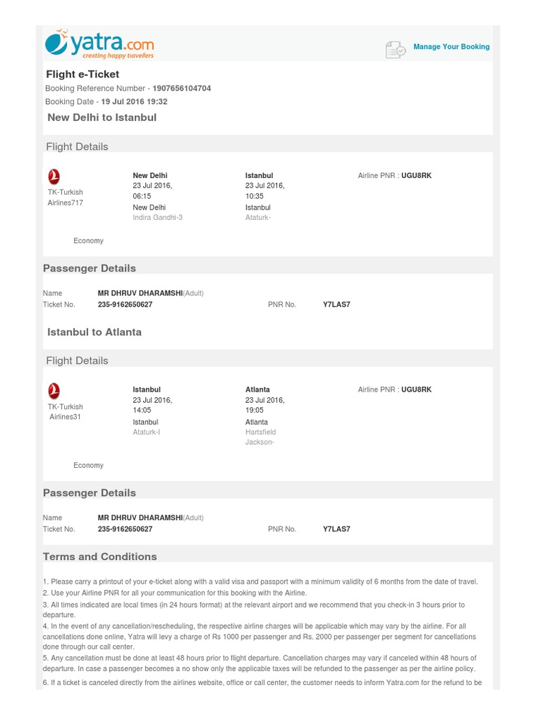 New Delhi To Istanbul Flight E Ticket