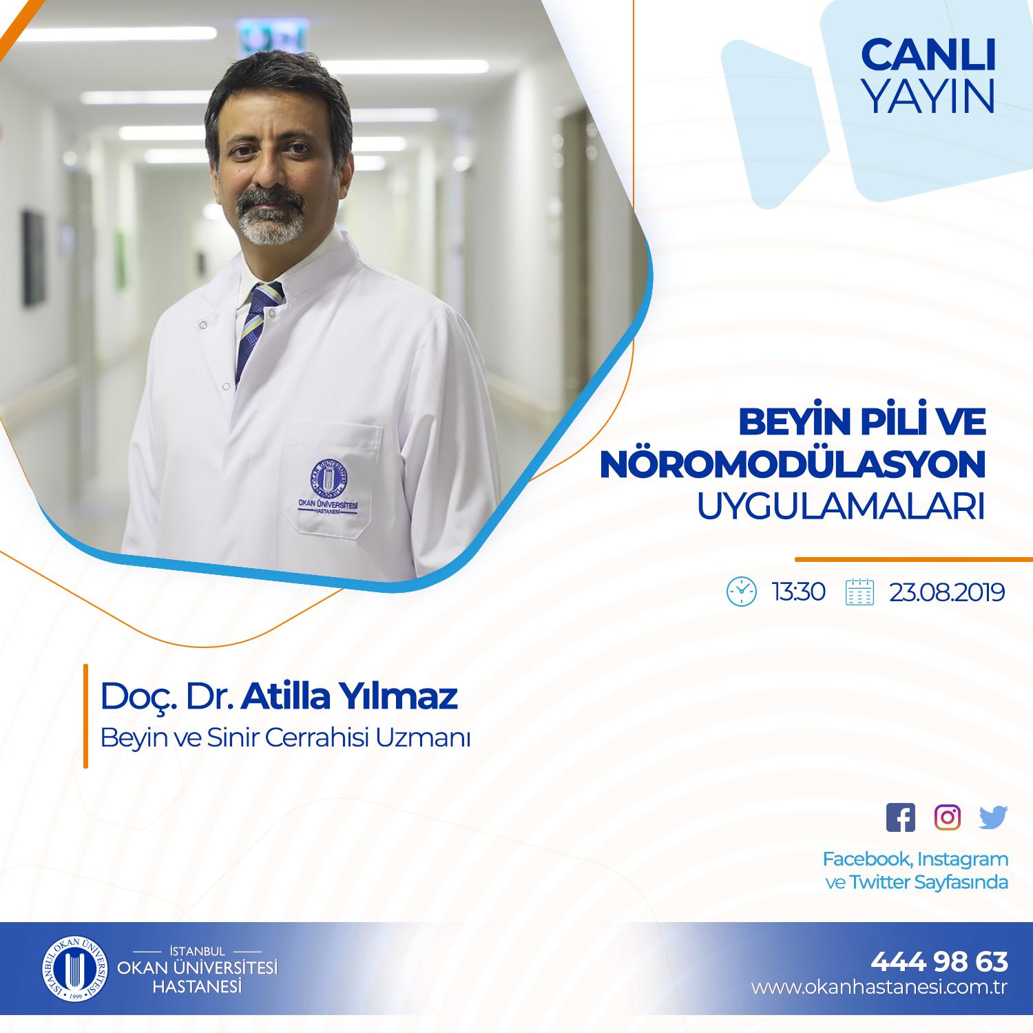 Istanbul Okan Universitesi Hastanesi على تويتر Sorularinizi Hazirlayin Beyin Ve Sinir Cerrahisi Uzmani Doc Dr Atilla Yilmaz Facebook Instagram Ve Twitter Sayfamizda Beyin Pili Ve Noromodulasyon Uygulamalari Konusu Ile Canli Yayinda Olacak