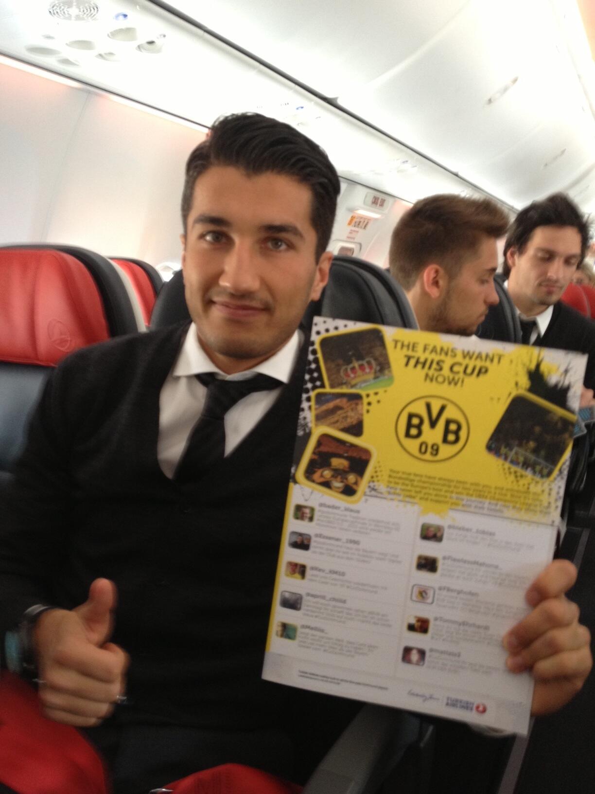 Turkish Airlines On Twitter Borussia Dortmund Players While Reading Your Tweets On Their Flight To London Say Hi To Nuri Godortmund Http T Co 3z6iom5gnl