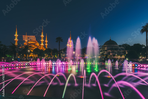Long Exposure Photography At Sultanahmet Mosque With Fountain In The Foreground During Ramadan Mont At Sultanahmet Park Istanbul Turkey Buy This Stock Photo And Explore Similar Images At Adobe Stock