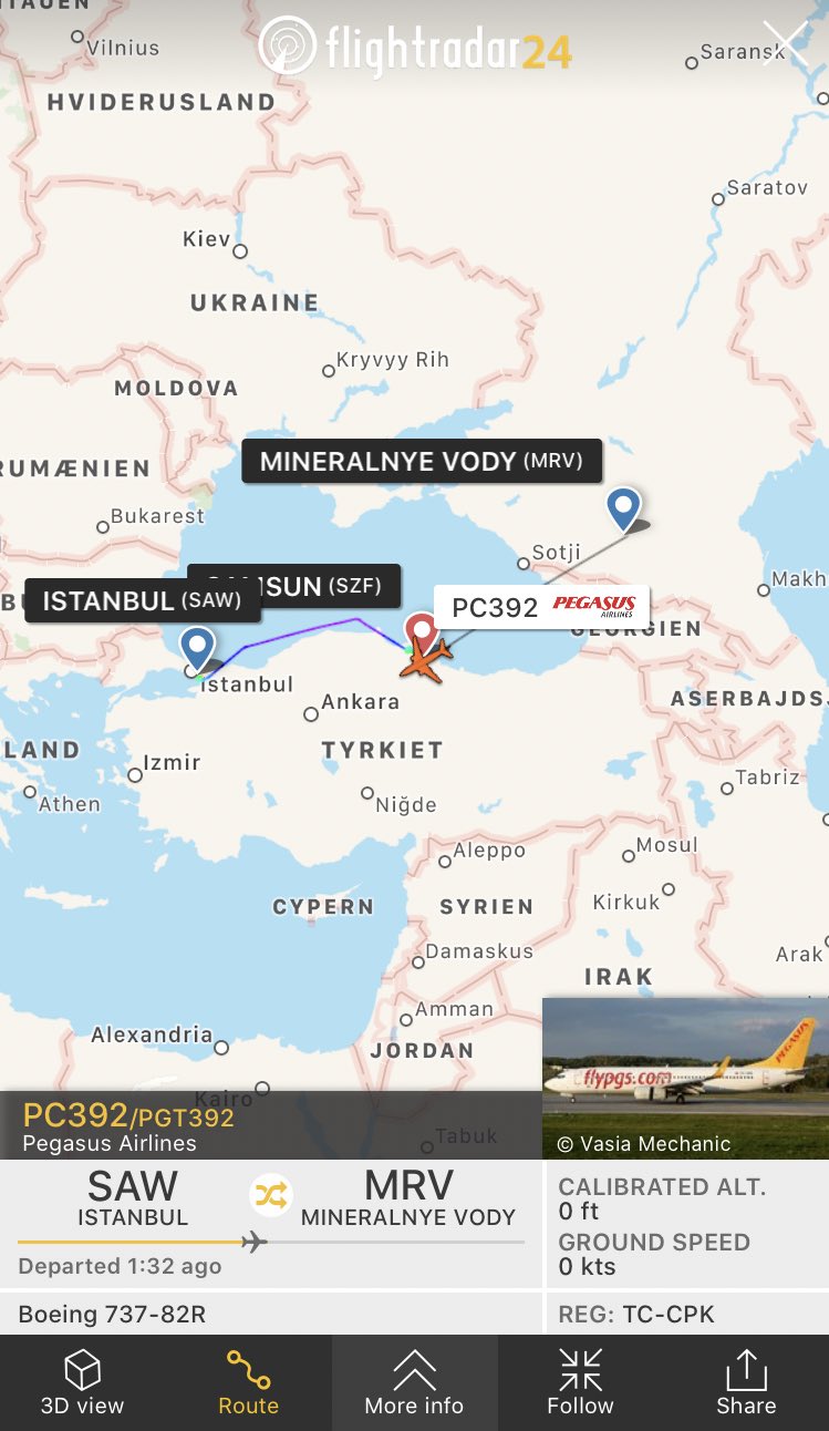 Aviationdk On Twitter Alert Pegasus Airlines Flight Pc392 From Istanbul Sabiha Gokcen Airport To Mineralnye Vody Diverted To Samsun Airport About 20 Minuts Ago Reason Still Unknown Https T Co Dieskttdms