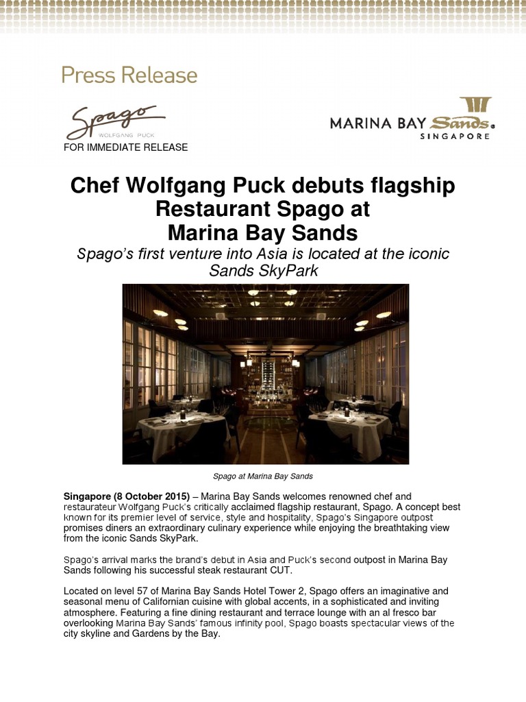 Chef Wolfgang Puck Debuts Flagship Restaurant Spago At Marina Bay Sands Cuisine Food And Drink